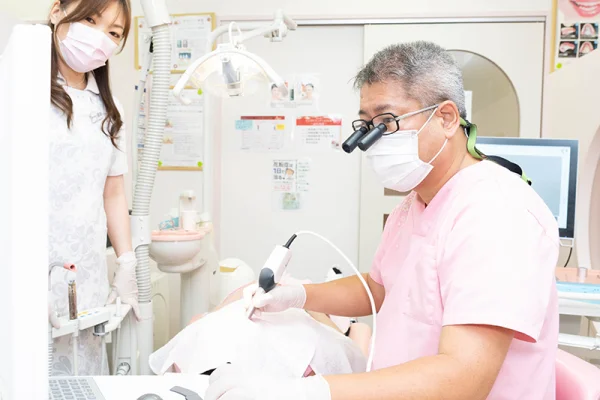 お口の中の病気を予防するためには、日々のホームケアと、歯科医院でのプロケアを並行して行うことが大切です。当院では、3カ月〜半年に1回のペースで、定期検診を行うようにしています。 検診では歯科衛生士によるクリーニングのほか、汚れの染め出しによる磨き残しのチェック、患者さま一人一人に合わせたブラッシング指導を行っています。 また、当院では口内の細菌を確認できる顕微鏡を使って視覚的に伝えることで危機感を持っていただくようにしています。 お口の中の歯垢(プラーク)を採取し、患者さまにご自身に実際に動いている細菌をお見せし、セルフケアに対するモチベーションを上げていただきたいと考えています。 お口の健康を意識して、「1本でも多く歯を残したい」と思っていただけるよう取り組んでいます。